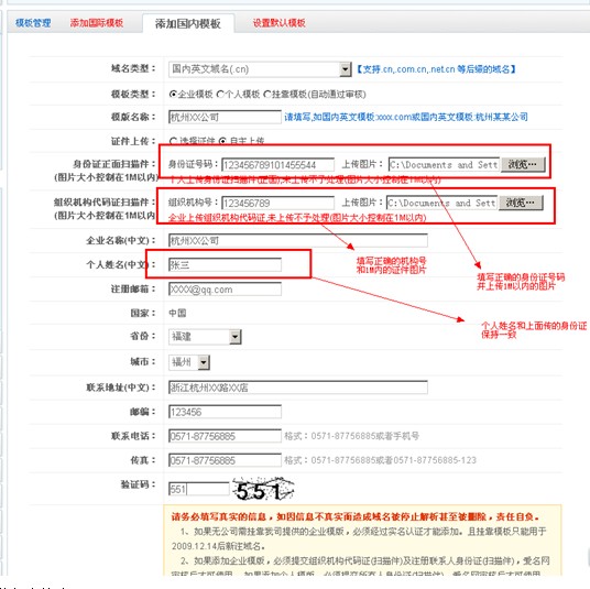用戶填寫正確的模板信息并上傳證件圖片,并提交