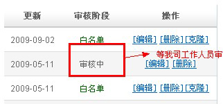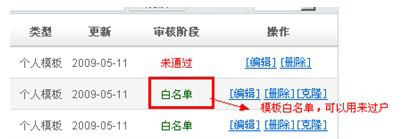 Cnnic復(fù)審?fù)ㄟ^后,模板才成為白名單,審核階段一欄 顯示“白名單”。