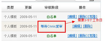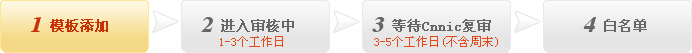 我司審核通過后,國內(nèi)模板還需等待Cnnic復(fù)審,審核階段一欄 顯示“等待Cnnic復(fù)審”,需要3-5個工作日(不包括周末)
