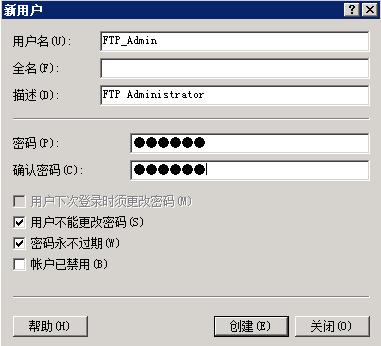 B. 輸入用戶名,全名和描述可以不填寫;輸入兩遍密碼;可以設(shè)置【用戶不能修改密碼】和【密碼永不過期】;選擇【創(chuàng)建】