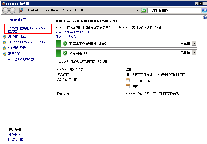 8)打開windows防火墻,選擇允許程序或功能通過windows防火墻
