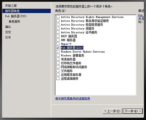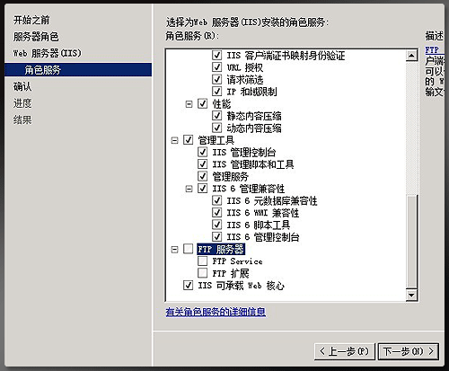 角色服務,勾選除“FTP服務器”以為所有服務,如下圖所示: