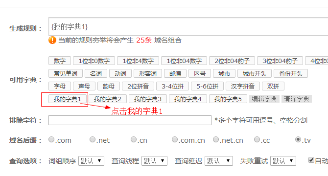 然后,如圖,選擇“我的字典1”規(guī)則→選擇“開始查詢”。