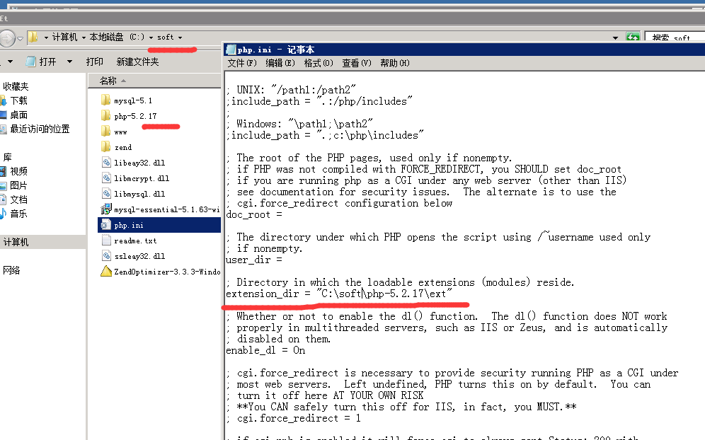 "./"改為extension_dir = "C:\soft\php-5.2.17\ext "
