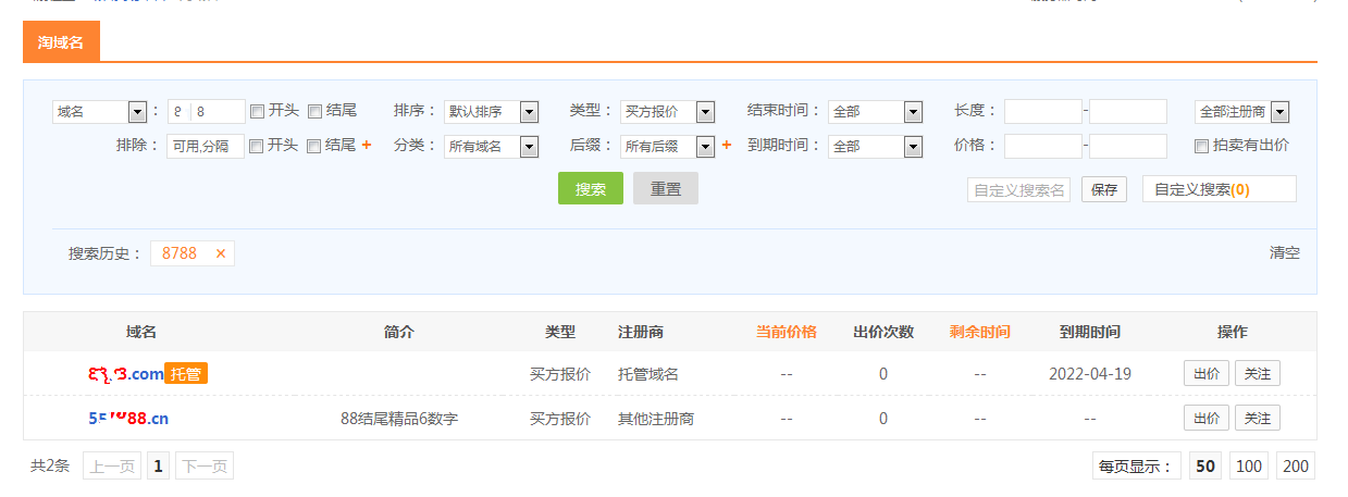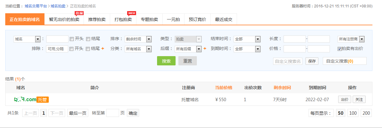 1:在一口價域名、域名拍賣、詢價域名中購買托管的域名。如圖1、2、3所示