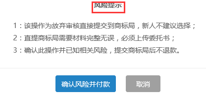 ”,是指直接將商標(biāo)提交至商標(biāo)局審核,我公司不會(huì)進(jìn)行審核,速度快,無(wú)需等待,建議比較有把握的用戶選擇該方式;