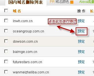 5、選擇您要預(yù)訂的域名、進(jìn)行預(yù)訂操作,如下圖所示: