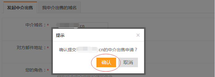 填寫完之后,出現(xiàn)確認(rèn)提交彈框,點擊確認(rèn)后,中介發(fā)起成功,系統(tǒng)自動給買家發(fā)郵件,等待買家同意或者修改中介信息。