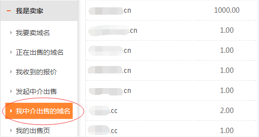 登錄會員中心后左側(cè)菜單 我是賣家—我中介出售的域名 查看