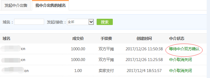 如果買家已經(jīng)付款到愛名網(wǎng)中介平臺,那么中介的狀態(tài)改為