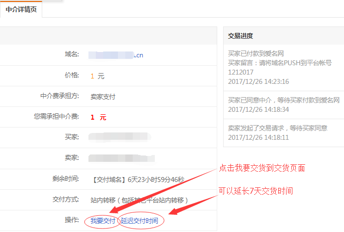 賣家點立即交付后只需要等待買家確認(rèn),那么愛名網(wǎng)中介平臺才將款項付給賣家