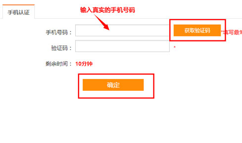 填寫手機號碼,獲取驗證碼,稍等一會就能收到發(fā)送到您手機上的驗證碼,在10分鐘內(nèi)輸入收到的驗證碼(如果超過時間,則需要重新發(fā)送),點擊【確定】按鈕
