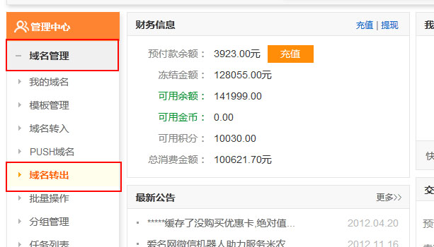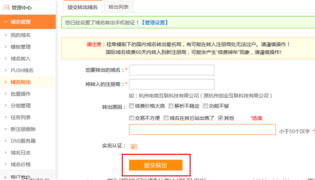 域名轉(zhuǎn)出步驟: